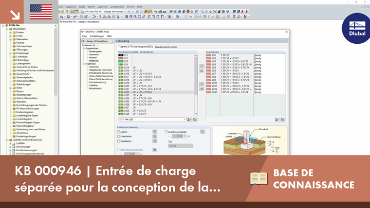 Dans RF-/FOUNDATION Pro, vous pouvez également modifier ce paramètre, si nécessaire. Pour ce faire, décochez la case «Appliquer les mêmes charges pour (STR) et (GEO)» dans la boîte de dialogue «Détails». Durch diese Auswahl wird die Eingabemaske "1.4 Belastung" angepasst, sodass die Eingabe der Belastung für die Nachweise des Tragwerks und des Baugrunds getrennt durchgeführt werden kann.