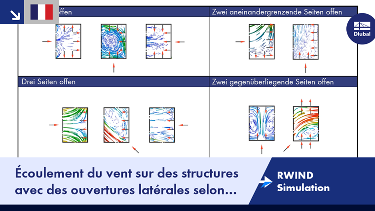 Enfin, un bâtiment exposé sur trois côtés est calculé dans RWIND Simulation. Un seul mur est considéré comme fermé.