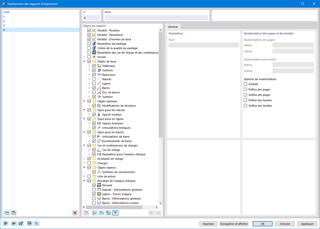 Décidez vous-même de la longueur de votre rapport d'impression et ajustez-le individuellement à l'aide des critères de sélection. Créez simplement des modèles-types de rapport d'impression à partir de projets existants. Vous pouvez les réutiliser dans tous vos projets.
