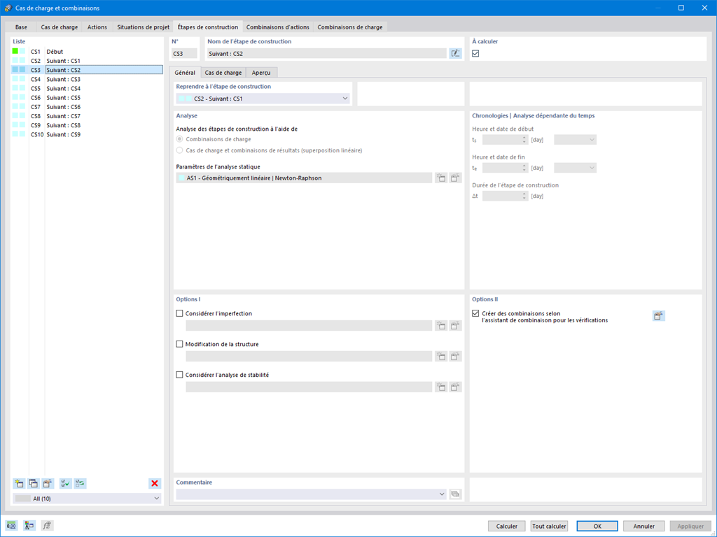 S'il existe des différences géométriques entre le système idéal et le système déformé en raison de la phase de construction précédente, celles-ci sont compensées en interne. La phase de construction suivante est basée sur le système sous contrainte de la phase de construction précédente. Ce calcul est effectué de manière non linéaire.