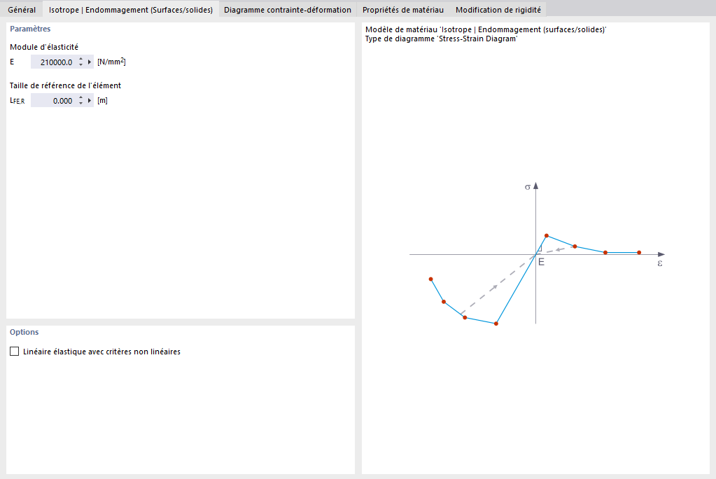 Theoretische Hintergründe zum Materialmodell 'Isotrop Beschädigung' können Sie im Fachbeitrag nachlesen: KB 001461 │ Modèle de matériau non linéaire - Endommagement .