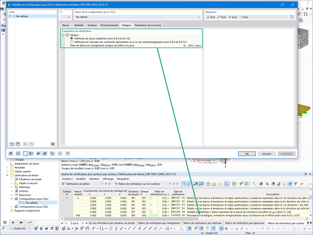 Le module complémentaire Vérification du béton vous permet d'effectuer la vérification à la fatigue des barres et des surfaces selon le chapitre 6.8 de l'EN 1992-1-1.