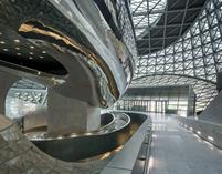 L'ensemble du musée est un bâtiment de 50 m de haut avec deux sous-sols et cinq étages au-dessus du sol, avec une surface totale de construction de 87 869 m². Les deux musées flottent au-dessus de l'immense structure du podium et sont entourés d'une enveloppe de grande taille. Le coût total de la construction est d'environ 222 millions d'euros.
