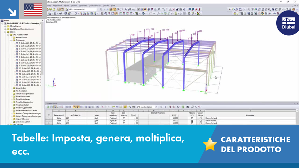 Dlubal RFEM 5 e RSTAB 8 - Tabelle: Imposta, genera, moltiplica, ecc.