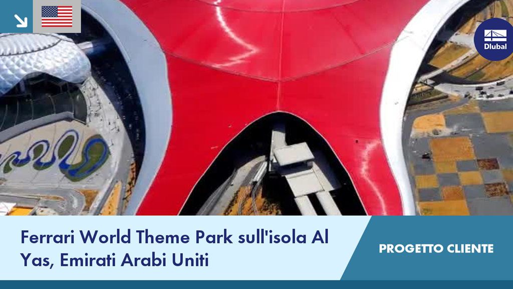 La gigantesca copertura del Ferrari World di forma irregolare è la più grande struttura intelaiata spaziale mai costruita.