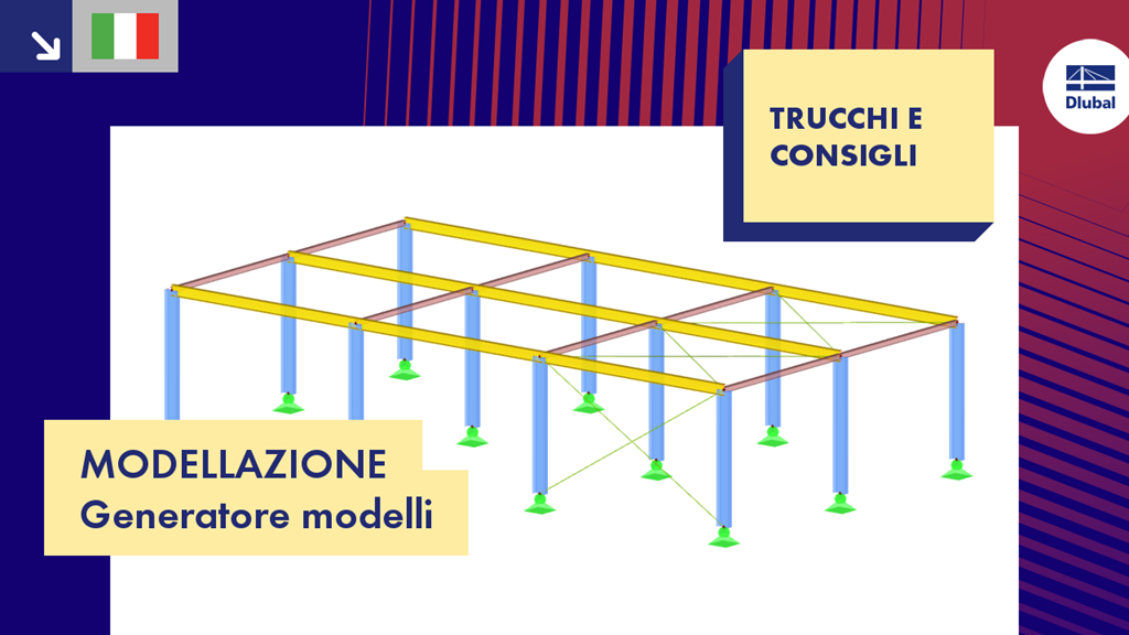 Questo video mostra come le strutture possono essere create automaticamente specificando i parametri più importanti usando i generatori di modelli. Come esempio, viene generato un telaio 3D con controvento.