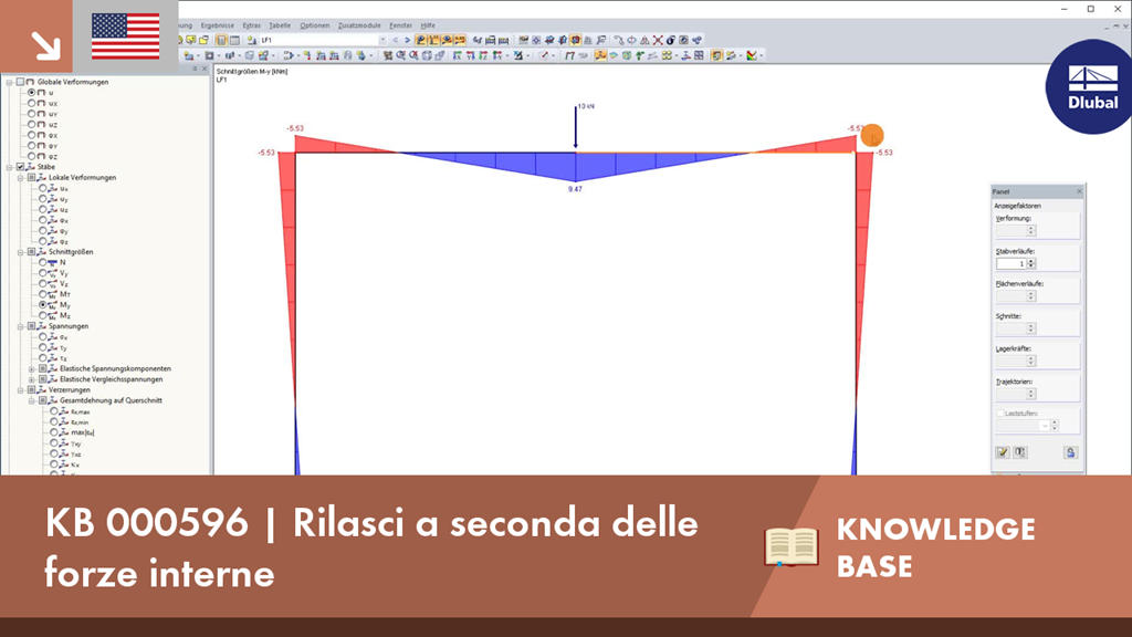 In RFEM e RSTAB, è possibile definire le proprietà non lineari dei rilasci dell'asta. Oltre ai diagrammi di attività e alla relazione forza-deformazione, hai anche la possibilità di utilizzare semplicemente i segni delle forze interne come criteri per l'efficacia del rilascio. In questo modo, è possibile specificare quali forze interne devono essere trasferite all'estremità dell'asta.
