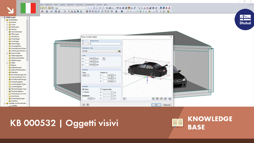 Per fare un'impressione convincente sul tuo cliente durante la presentazione del modello strutturale, RFEM 5 e RSTAB 8 offrono la possibilità di includere oggetti visivi nel modello. Questi oggetti consentono sia ai laici che agli ingegneri di comprendere meglio le dimensioni del sistema.