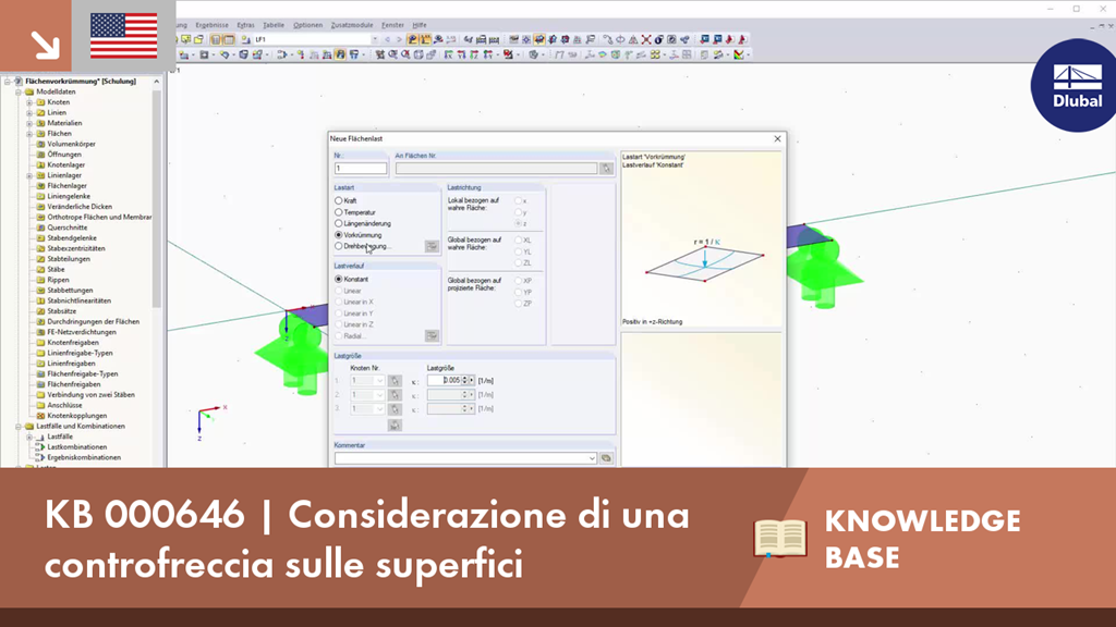 In RFEM, hai la possibilità di considerare un'imperfezione sulle superfici. È possibile farlo per mezzo del carico superficiale "Precamber".