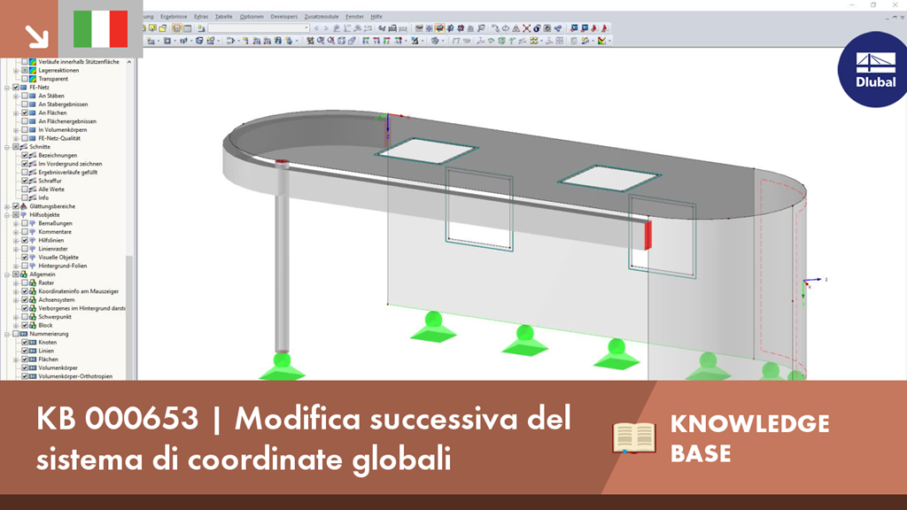 Prima di creare un modello strutturale, ogni utente sta valutando i parametri di contorno del sistema e come rappresentare al meglio il modello. Particolare attenzione dovrebbe essere prestata all'orientamento del sistema di coordinate globale. In ingegneria, l'asse Z globale è generalmente orientato verso il basso (nella direzione del carico permanente), mentre tende ad essere verso l'alto in architettura. Queste differenze possono spesso portare a complicazioni durante la modellazione, ad esempio quando si sostituiscono modelli globali o layer DXF.