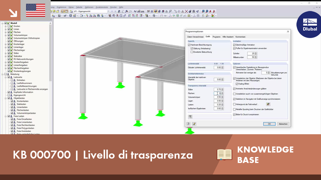 L'intensità della trasparenza di vari elementi grafici nella modalità di visualizzazione trasparente continua può essere modificata individualmente nella finestra di dialogo Opzioni del programma nella scheda Grafica per migliorare la panoramica. Un valore alto significa una trasparenza bassa.