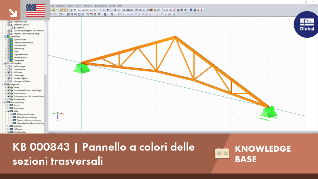 Per una rapida panoramica delle sezioni trasversali utilizzate, è possibile visualizzare le aste a colori ordinate per sezione trasversale. Utilizzare il pulsante destro del mouse nella finestra di lavoro per selezionare "Colori nei grafici secondo" → "Sezioni trasversali" dal menu di scelta rapida. Nelle versioni correnti del programma, è possibile utilizzare un pannello con una scala di colori modificabile per questo.