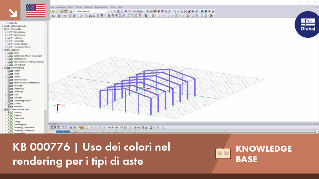 In RFEM e RSTAB, è ora possibile anche visualizzare e verificare i tipi di aste utilizzate visivamente, tramite i colori. A tale scopo, è stata integrata un'opzione nel Navigatore display.