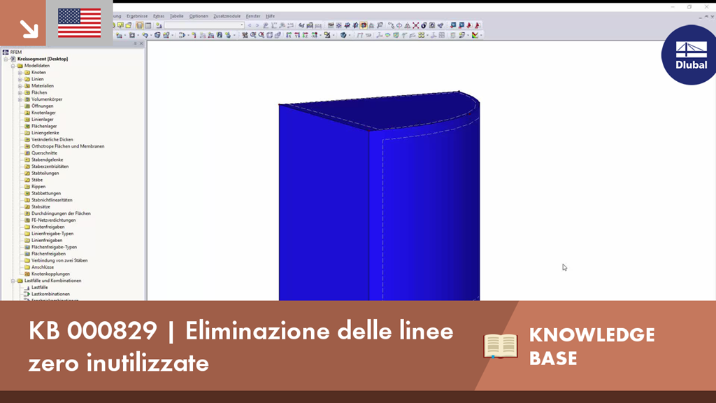 In RFEM, è possibile eliminare le linee zero inutilizzate. È possibile trovare questa funzione in "Strumenti" → "Verifica modello" → "Elimina linee di riferimento inutilizzate".