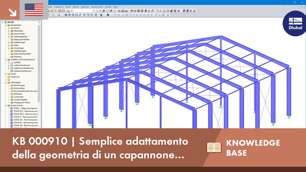 KB 000910 | Semplice adattamento della geometria di un capannone 3D: Inclinazione del tetto e spaziatura tra i telai