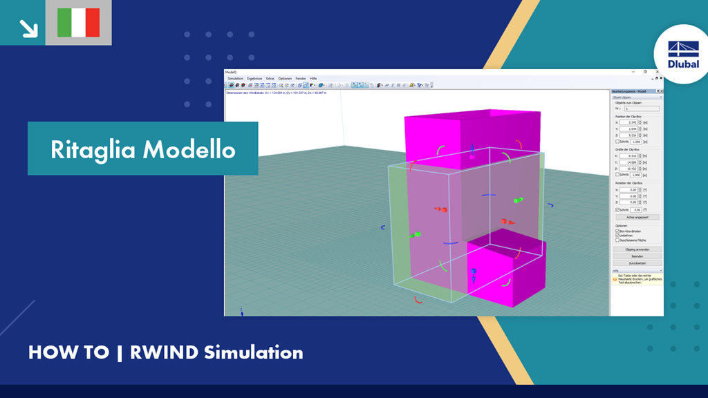 Utilizzare la funzione "Ritaglia modello" per ritagliare parti del modello in RWIND Simulation.