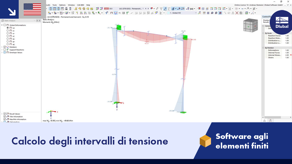 Questo video mostra il calcolo degli intervalli di tensione dall'approccio di diverse situazioni di carico. Questa attività viene eseguita in RFEM 6 o RSTAB 9 utilizzando l'add-on "Analisi tensioni-deformazioni" con la specifica delle aste da analizzare.