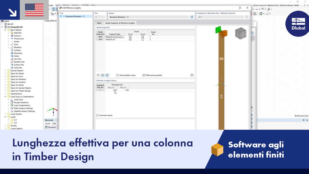 In questo video, puoi vedere come definire diverse lunghezze efficaci per una colonna. Inoltre, una riduzione della rigidezza causata dalla viscosità può essere considerata anche per l'analisi di stabilità in Verifica legno.