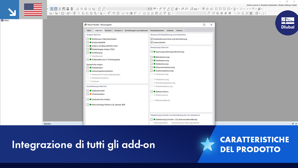 Tutti gli add-on sono integrati automaticamente nei programmi RFEM 6 o RSTAB 9. Ciò consente alle singole parti del programma di interagire (ad esempio, determinazione del momento ribaltante ideale di travi in legno utilizzando l'add-on "Torsione di ingobbamento (7 DOF)" o considerazione dei processi di form-finding sfalsati tramite l'add-on "Analisi delle fasi costruttive (CSA)", ecc.).