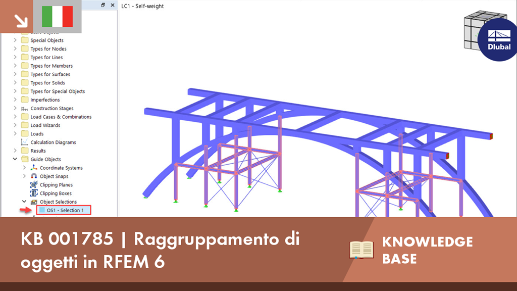 La selezione di oggetti è un raggruppamento di oggetti che soddisfano determinati criteri che sono stati definiti nel programma. Pertanto, gli oggetti che soddisfano i criteri definiti possono essere selezionati e modificati allo stesso tempo. Questo video ti mostrerà come farlo con "Selezione oggetto" come nuovo oggetto guida di RFEM 6 o RSTAB 9.