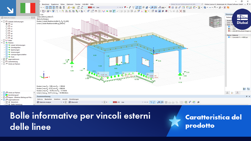 Per i risultati dei vincoli esterni della linea, è possibile visualizzare alcune informazioni aggiuntive nelle bolle informative, come descrizione, somma, valore medio e così via.