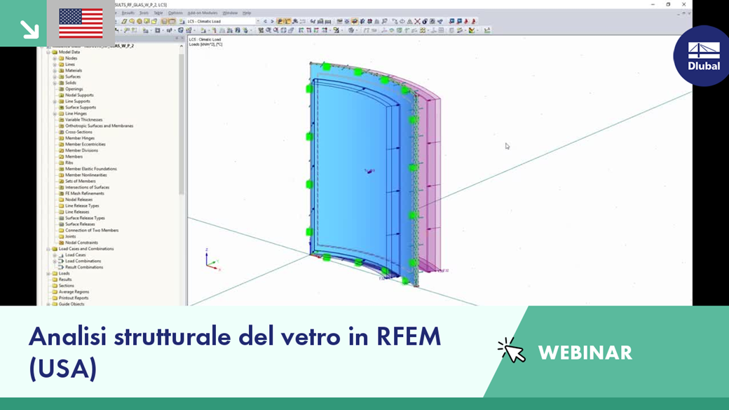 - Fino alle 00:15:45: Modellazione e carico di superfici vetrate in RFEM