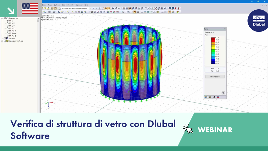 Questo webinar mostra come utilizzare il software di analisi strutturale e di progettazione di Dlubal per la verifica di instabilità delle piastre secondo EN 1993-1-5 e della verifica di instabilità di gusci secondo EN 1993-1-6.