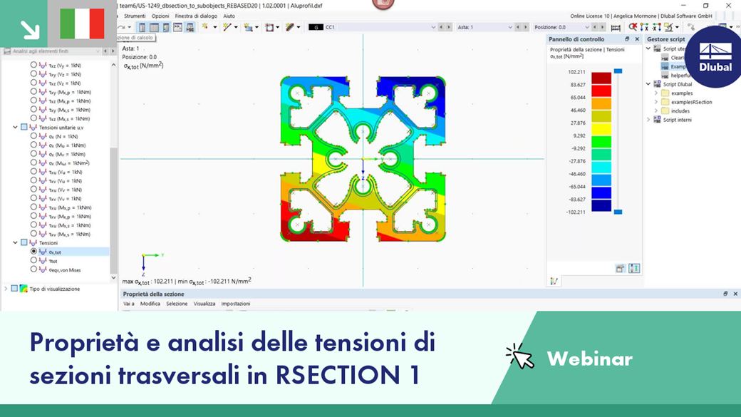 Proprietà e analisi delle tensioni di sezioni trasversali in RSECTION 1