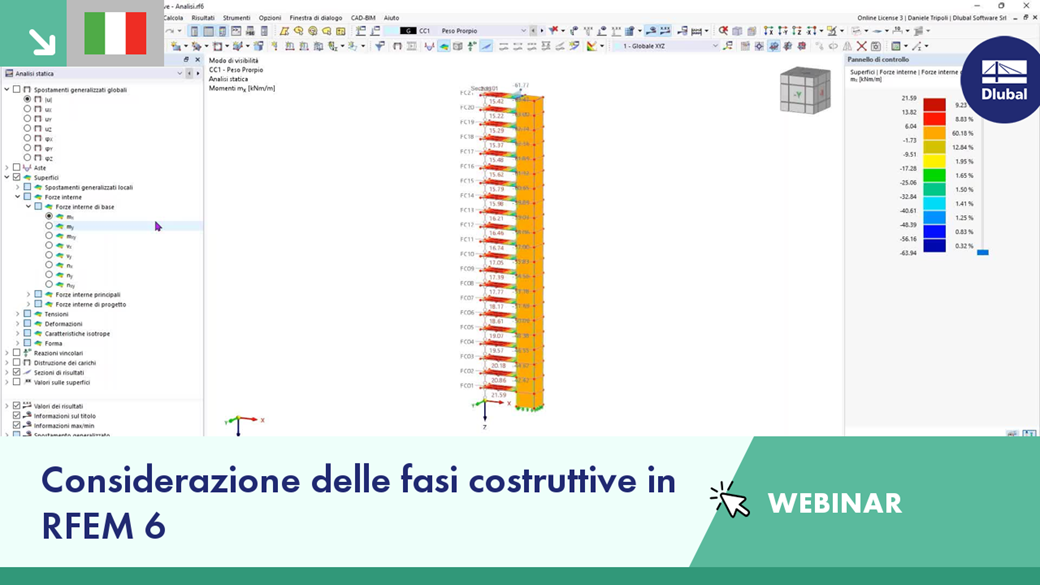 Il webinar fornisce un'introduzione all'uso della considerazione delle fasi costruttive in RFEM 6 nel processo di progettazione di un'opera con l'uso dell'add-on Analisi delle fasi costruttive (CSA).