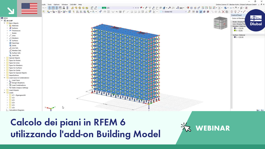 Calcolo dei piani in RFEM 6 utilizzando l'add-on Modello edificio