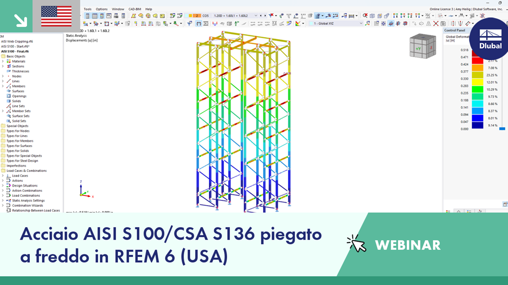 Questo webinar fornirà un'introduzione alla progettazione di aste in acciaio piegate a freddo sec. all'AISI S100/CSA S136 in RFEM 6.