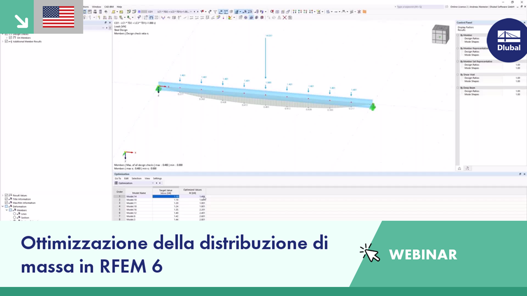 Utilizzo del processo di ottimizzazione per un modello di struttura portante eccitata armonicamente