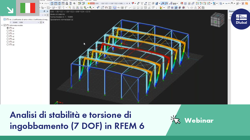 Considerazione dell'ingobbamento delle sezioni trasversali nel calcolo globale di strutture intelaiate con l'add-on Torsione di ingobbamento
