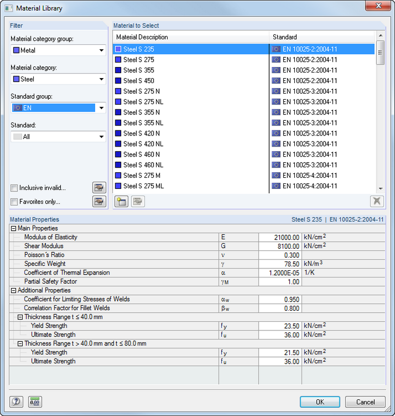 Le ampie librerie di sezioni trasversali e di materiali facilitano la modellazione di strutture a piastre e travi. Questi database possono essere filtrati ed ampliati con voci definite dall'utente. È possibile importare ed analizzare anche sezioni trasversali speciali generate in SHAPE-THIN e SHAPE-MASSIVE.