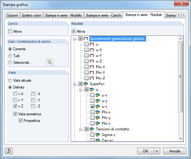 È possibile definire e stampare in serie il modello, i carichi e i risultati. RFEM crea diversi grafici dalle angolazioni specificate. Ad esempio, è possibile stampare tutte le forze interne in vista isometrica con un solo clic del mouse.
