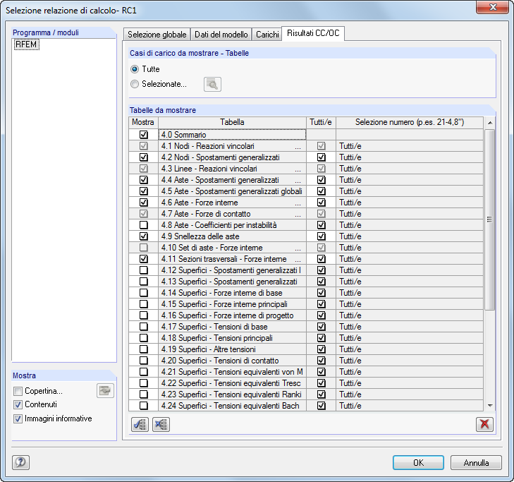 L'estensione di una relazione di calcolo può essere modificata individualmente utilizzando criteri di selezione. È possibile creare modelli di stampa basati su relazioni di calcolo esistenti e riutilizzarli per altri progetti.