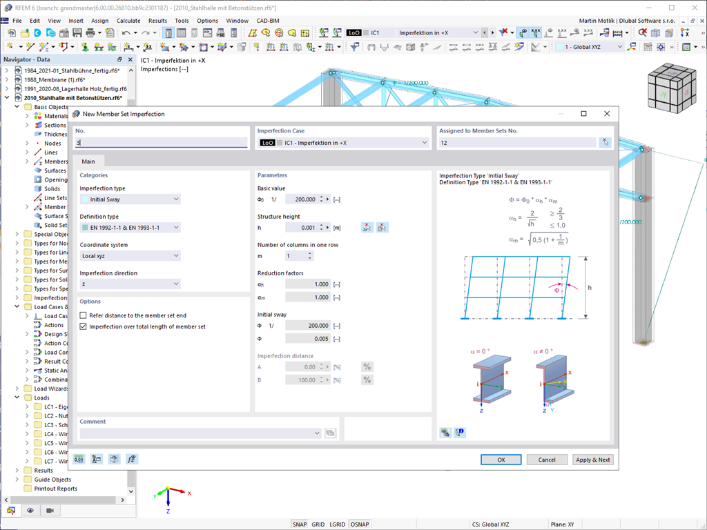 Se lavori con carichi, qui trovi una selezione di funzioni utili. Sono disponibili vari tipi di carico per i carichi delle aste e delle superfici (forza, momento, temperatura, controfreccia e così via). È possibile assegnare carichi di mmber ad aste, set di aste ed elenchi di aste. Nel caso di imperfezioni, l'inclinazione e la controfreccia possono essere determinate con precisione secondo l'Eurocodice, la norma americana ANSI/AISC 360, la norma canadese CSA S16 e così via.