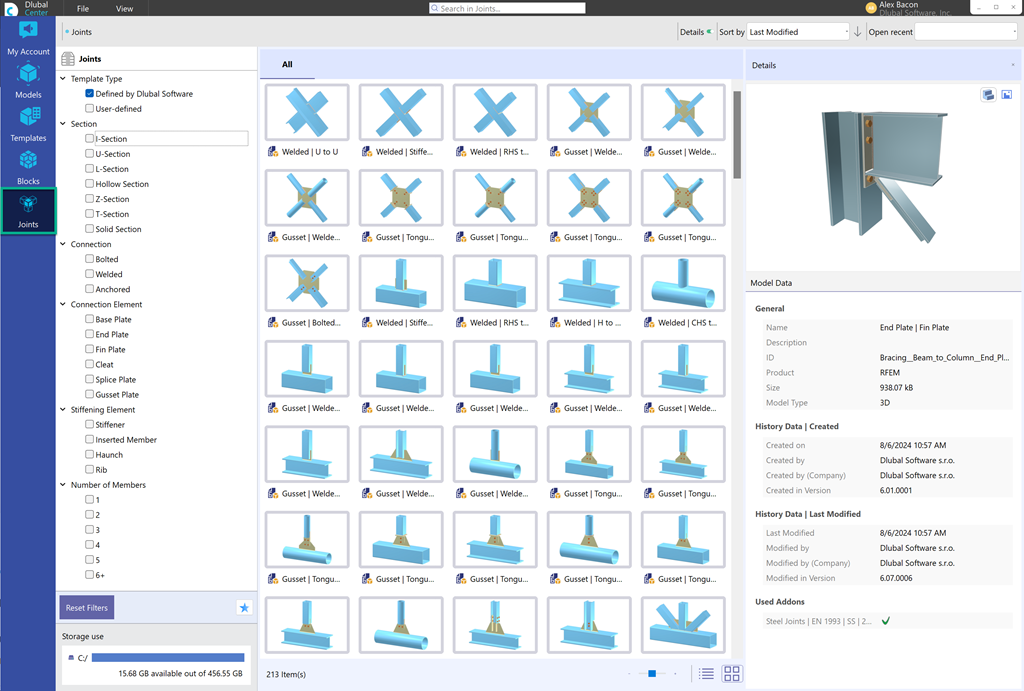Nel Dlubal Center, c'è una vasta libreria con collegamenti disponibili per l'add-on Giunti acciaio.