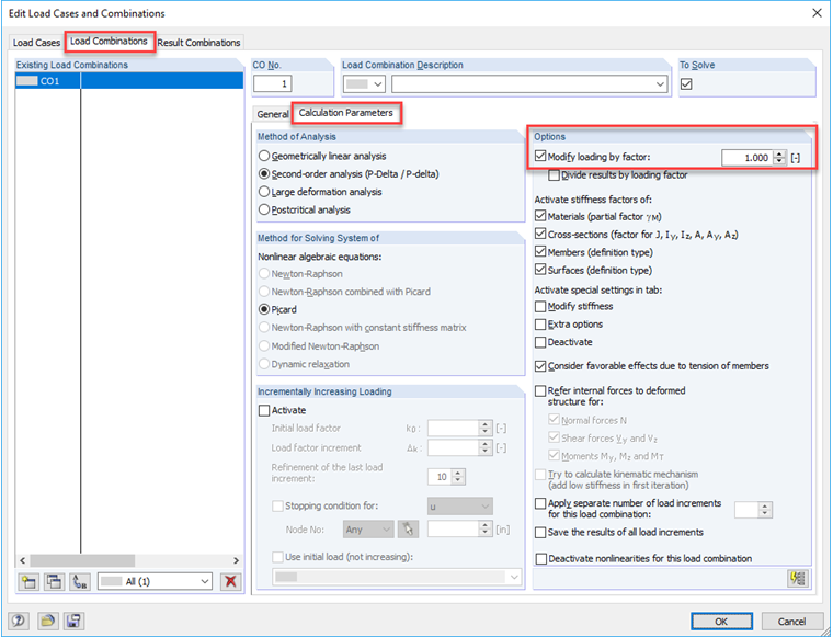 Il coefficiente del caso di carico è sempre considerato nel calcolo, e quindi anche nelle combinazioni di carico e di risultati.