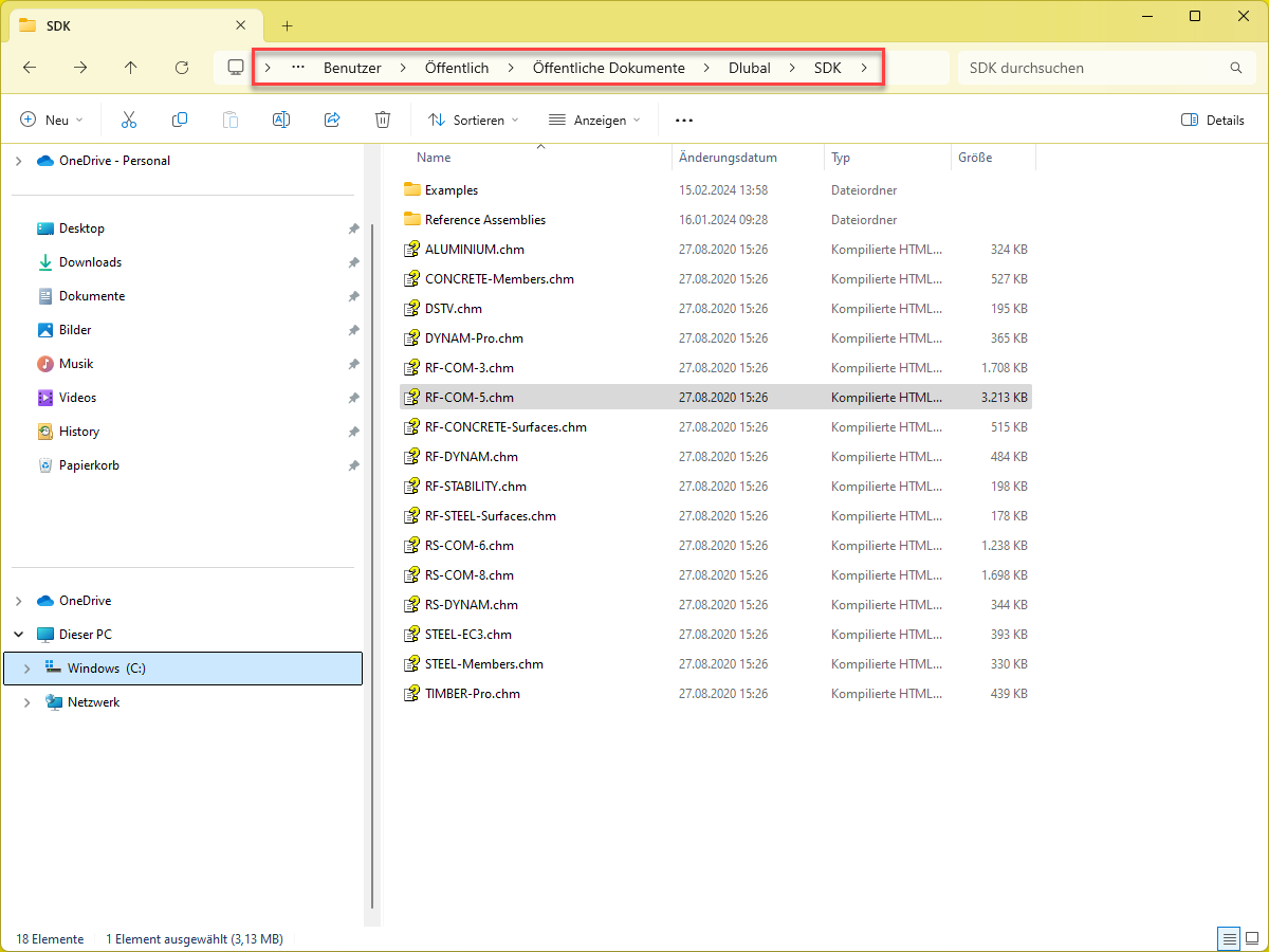 - Sul tuo computer, nella cartella SDK, troverai alcuni file Excel con esempi. Questa cartella si trova nella directory C:\Users\Public\Documents\Dlubal.