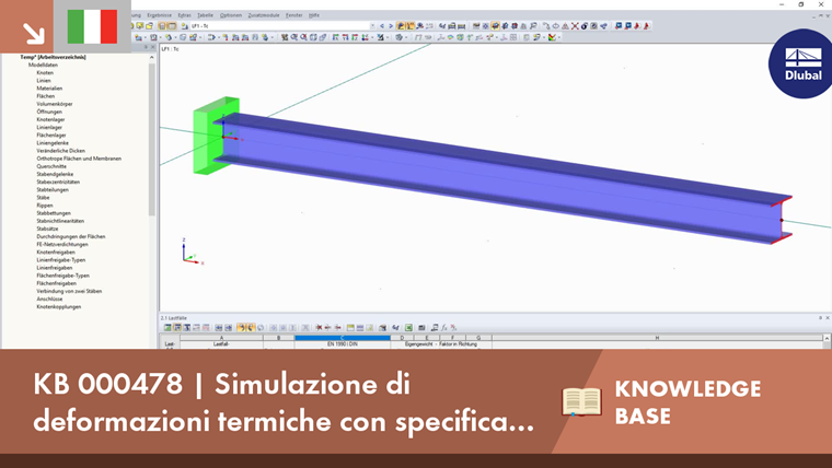 Poiché una variazione di temperatura globale del componente ha un effetto membrana e una variazione di temperatura sopra l'altezza del componente ha un effetto di flessione, il carico di temperatura è definito in due parti nella finestra di dialogo del carico: