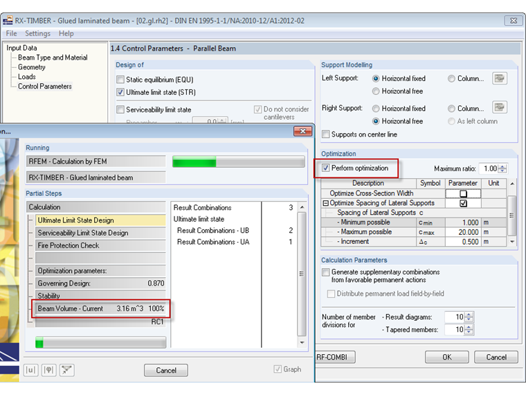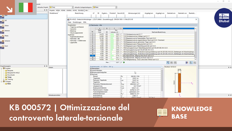 La lunghezza d'instabilità laterale-torsionale nel progetto di resistenza al fuoco può essere applicata in modo identico alla lunghezza pertinente nel progetto allo stato limite ultimo. In alternativa, puoi anche applicare l'intera lunghezza della trave. Pertanto, il programma considera un cedimento del controvento laterale -torsionale in caso di incendio.