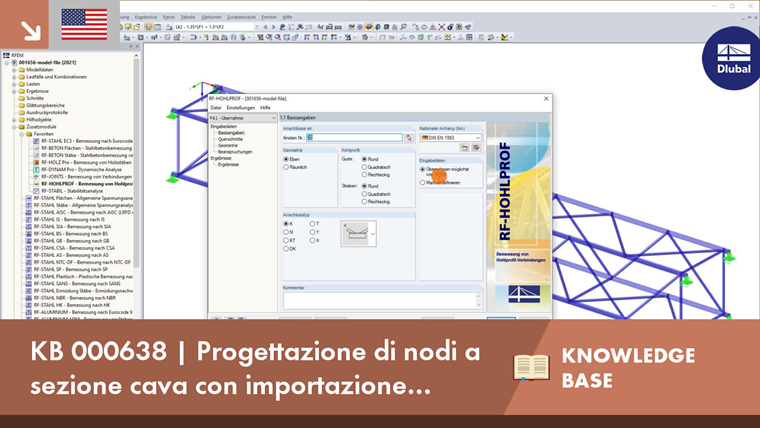 Oltre alla geometria e al trasferimento del carico da RFEM o RSTAB, è possibile definire manualmente le sezioni trasversali e le tensioni sul nodo. In questo modo, i collegamenti possono essere progettati anche senza creare il modello di travatura reticolare in RFEM o RSTAB.