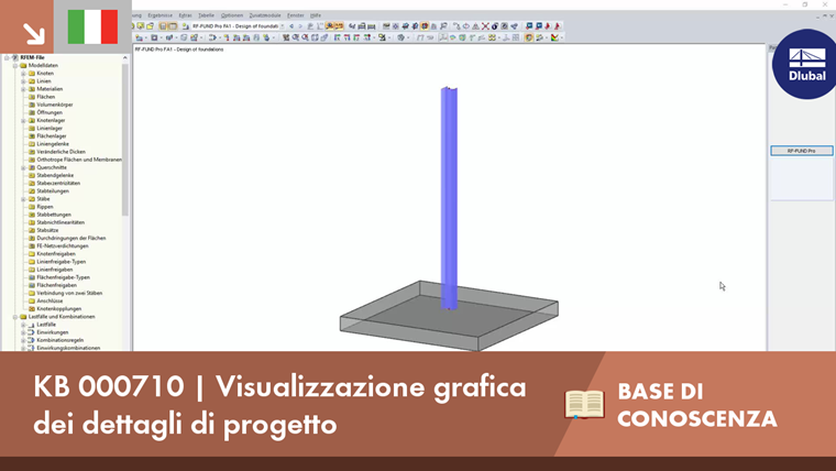 Tra le altre cose, le forze vincolari introdotte dai vincoli esterni nodali possono essere visualizzate individualmente (Pz , Px , Py , Mx , Mz ) o come un intero carico nodale. Sono anche illustrati risultati come la distribuzione della tensione di compressione sotto la piastra di fondazione (vedere la figura).