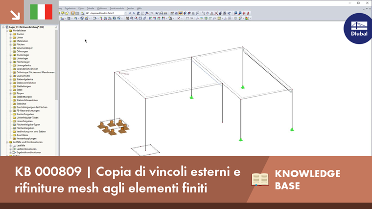 Se si desidera copiare nodi, linee o superfici, compresi i vincoli esterni, è necessario selezionare sia gli oggetti che i vincoli esterni. Facendo clic con il pulsante destro del mouse sull'oggetto (non sul supporto), è possibile utilizzare anche la funzione "Sposta/Copia".