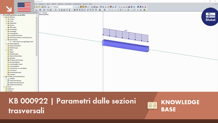 L'obiettivo è quello di avere un carico superficiale di p = 50 kN/m² che agisca solo su un'ala della trave. Questa sezione trasversale è un tubo quadrato con una larghezza dell'ala di 200 mm; si dovrebbe prendere questa larghezza dalle proprietà della sezione trasversale al fine di convertire il carico della superficie in un carico della linea corrispondente. Ci sono anche diversi modi per farlo. La figura 01 mostra uno di loro.