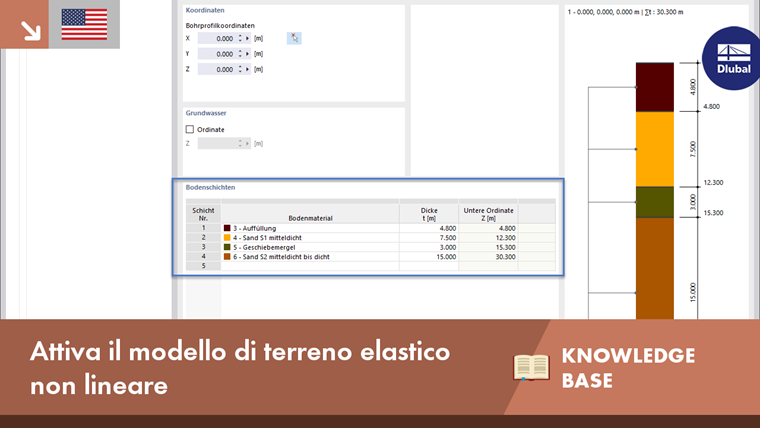 Il terreno mostra un comportamento del materiale estremamente non lineare. Una delle sue proprietà significative è la dipendenza della rigidezza del suolo dalle tensioni. Il modello del materiale del suolo elastico non lineare è appropriato per rappresentare la rigidezza dipendente dalle tensioni.