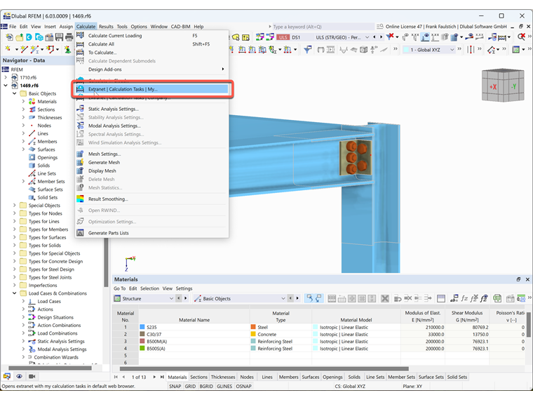 - Il calcolo cloud è stato attivato da Dlubal Software.