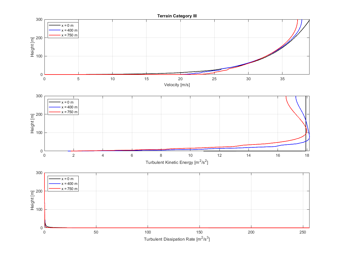 Questo esempio si basa sul test dello strato limite atmosferico (ABL) dal documento del WTG tedesco: Scheda informativa del Comitato 3 - Simulazione numerica dei flussi di vento, Capitolo 9.1 (vedi riferimenti). Prima di ogni simulazione numerica, si dovrebbe verificare se lo strato limite atmosferico definito all'ingresso arrivi alla struttura testando il suo sviluppo in un tunnel vuoto. Questo non riguarda solo la distribuzione delle velocità, ma anche le quantità turbolente. Il test deve essere eseguito sia per i calcoli stazionari (RANS) che per quelli transitori (URANS, LES). Nell'articolo seguente, è mostrato lo sviluppo di un campo di velocità, campo di energia cinetica turbolenta e campo di tasso di dissipazione turbolenta per le quattro categorie di terreno da I a IV definite nella EN 1991-1-4. Viene utilizzata una turbolenza anizotropica verticale secondo il Capitolo 6.3.1 e il modello di turbolenza RANS k-ω SST.