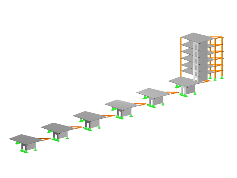 Gli ingegneri di Equilibrium Consulting Inc. hanno usato RFEM per modellare, studiare e progettare i componenti principali dell'edificio. Per lo studio del vento trasversale, gli edifici sono stati considerati in modo indipendente l'uno dall'altro. Le singole ali dell'edificio sono realizzate con nuclei di cemento armato a cui sono collegate travi e colonne in legno lamellare.